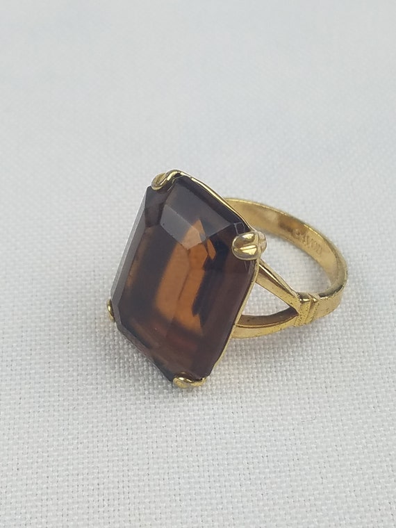 True Vintage Avon Ring Clear Frosted Camphor Glass Rhinestone Gold Tone 1833409396 from thumbs.worthpoint.com