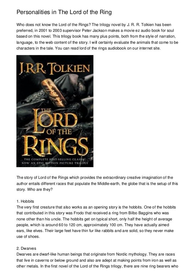 Are there any major errors or omissions thus far? The lord of the rings series contains dozens of races, all with different strengths and weaknesses. In the foreword to the revised edition of the lord of the rings, tolkien cautioned strongly against viewing it as an allegory, saying that he disliked allegory himself.