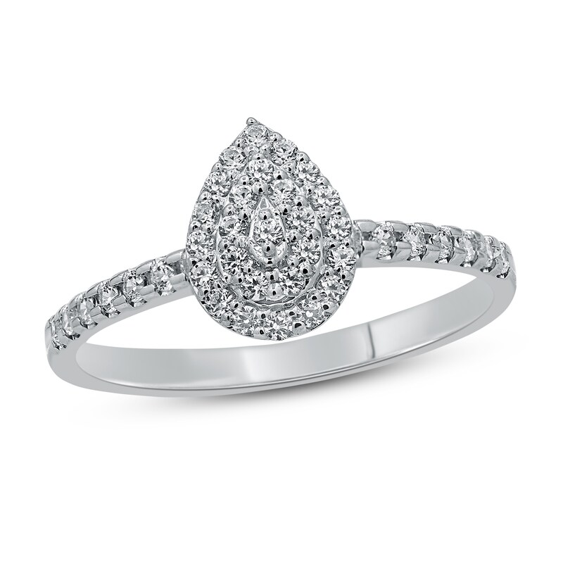 Pictures. This ring is sterling but has been treated so it won't tarnish. Pear engagement rings, sometimes referred to as teardrop engagement rings are named for their distinctive shape, one that features both a rounded and a pointed end.