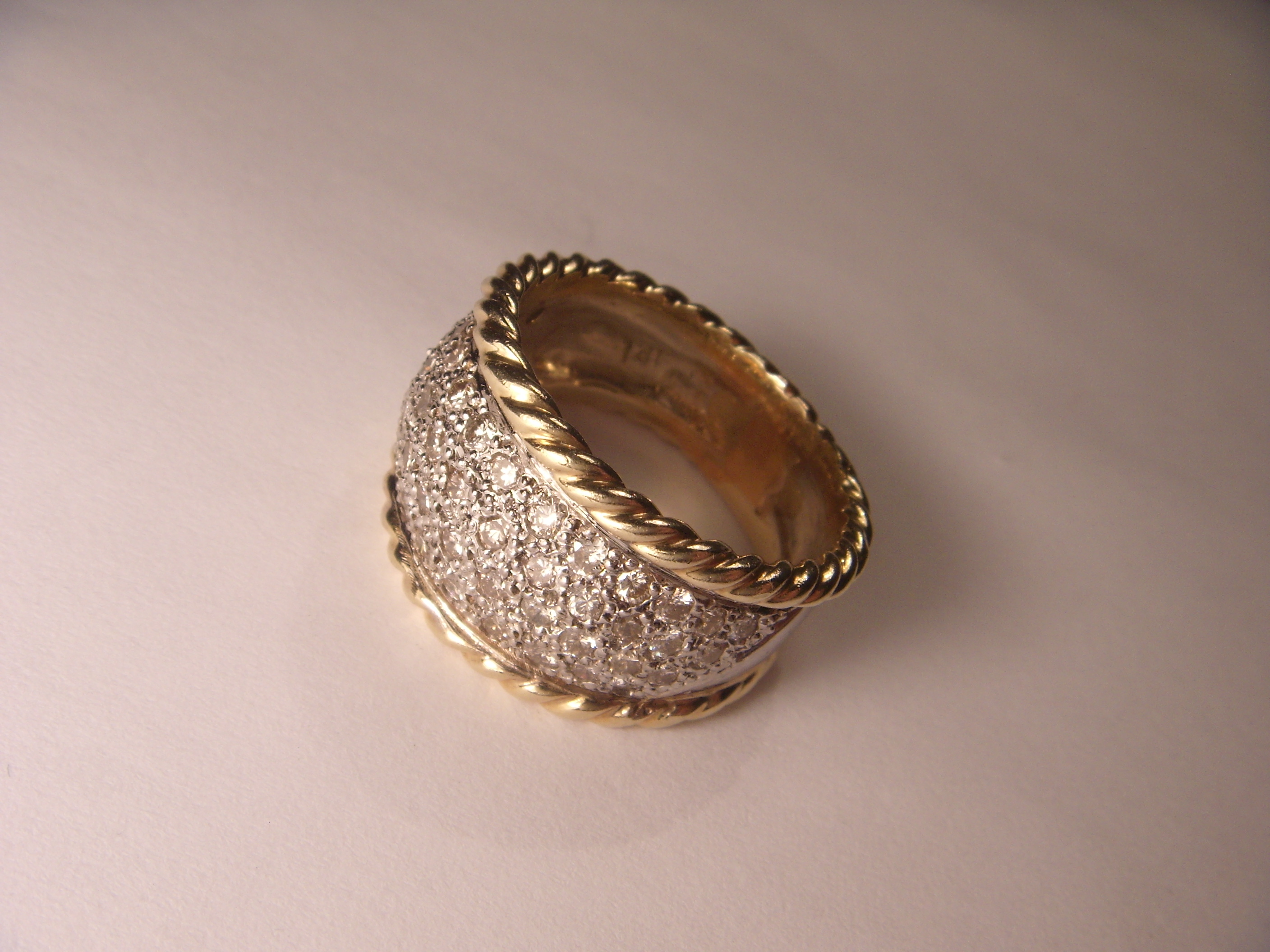 A staple through and through. Update your ring collection with this enchanting bella uno wide band ring. Extra large gold chain ring for women minimal wide thick braided statement cigar index thumb band. #polyvore #fashion #jewelry #rings #gold band ring #diamond band ring #multi colored diamond rings #tri color ring #gold diamond ring.