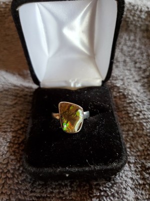 Quick view compare choose options. Found only in the bearpaw formation in alberta, canada, this organic gemstone has a dazzling range of colors and patterns and is highly desired for freeform natural cabochons and assembled jewelry pieces. Ammolite ring size 8.25 (925 sterling silver) ring31361. Alexa sterling silver split shank rope solitaire ring.
