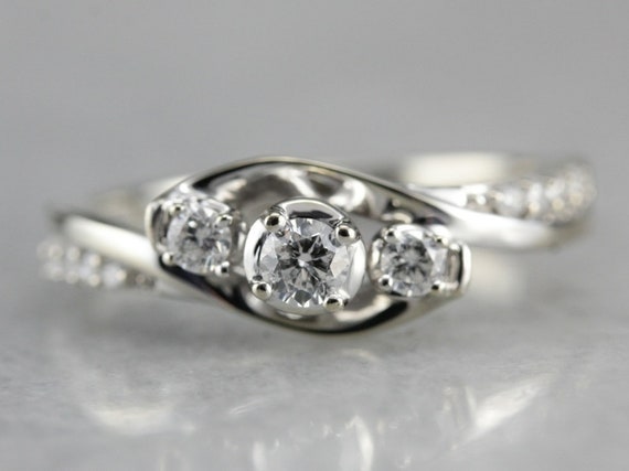 Each of the three sterling silver rings clings a band of clear cubic zirconia stones. 2 ct twd three stone diamond engagement ring 14k white gold anniversary band. Certified natural round shape trilogy diamond engagement ring, solid gold, handmade 3 stone diamond ring vintage anniversary ring.