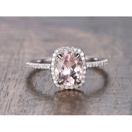 Authentic 1.25 carat oval cut morganite and real diamond engagement ring for women made in 14k white gold, gift for mother,girlfriend,women $319.00+ loading