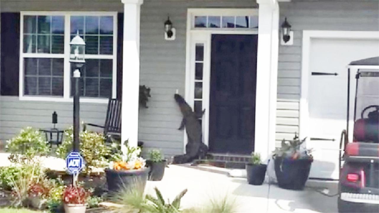 A south carolina woman was shocked to find an alligator trying to ring her doorbell when she return home wednesday. Former new jersey resident karen alfano actually captured an alligator trying to ring her doorbell at her new south carolina abode. The alligator lurks in front of the property door for a few seconds, before actually getting up onto his back legs and ringing the doorbell.
