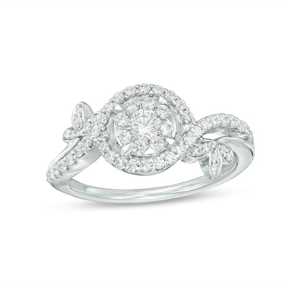 Images. Discover the art of the ring at krikawa. Forever one moissanite engagement ring in 14k white gold with diamonds in flower buds and leafs on vine motif size 6.