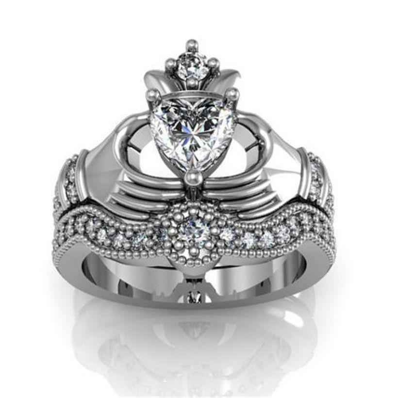 The hands signify friendship, the crown highlights loyalty, and the heart is a beautiful symbol of enduring love. The ring may be traditional or modern, but always includes a heart held by hands with a crown shining above the heart. Shop beautiful designs today & receive free shipping on all orders! 1.55 ct brilliant heart cut cz designer irish celtic claddagh solitaire wedding engagement promise ring in solid 14k white gold 4.0 out of 5 stars 1 $270.99 $ 270.