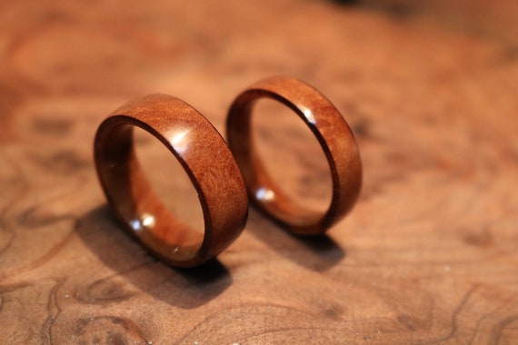 Our wood wedding bands and wood engagement rings boast an abundance of natural beauty. Each of our wood wedding rings tells a story. Come and check out our little wood shop for some great deals on exotic burl wood band rings and more!